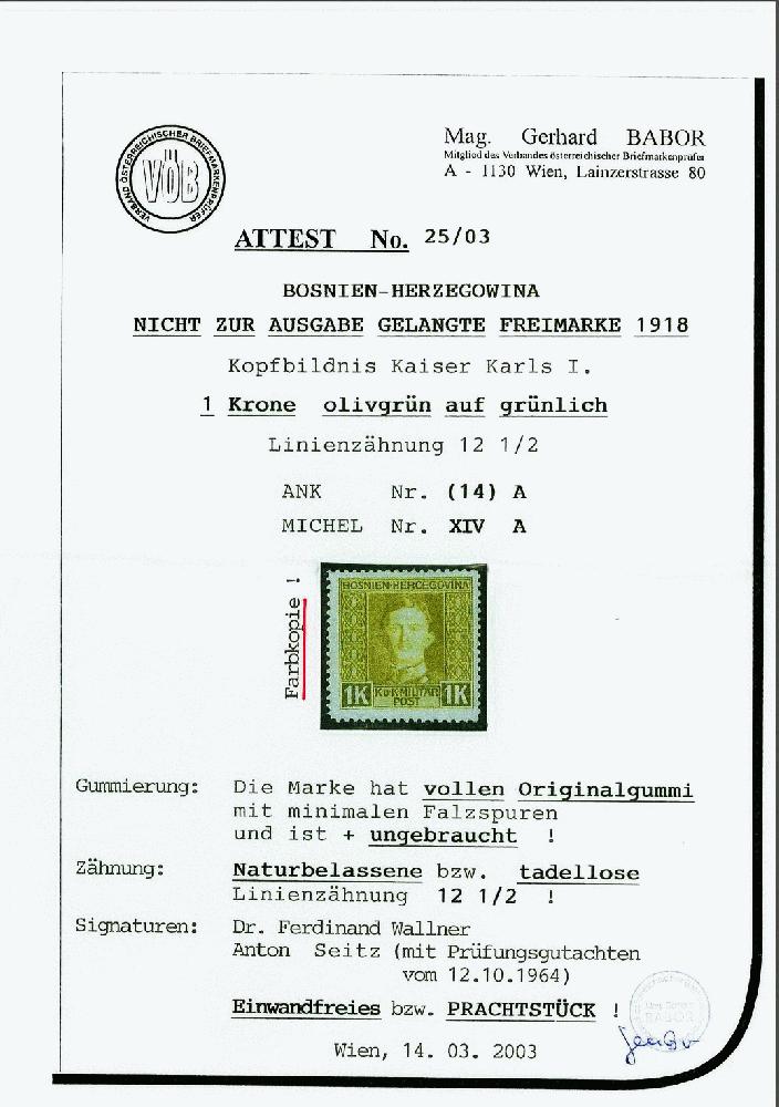 | Prüfer: | Babor, Gerhard (VÖB (Verband Österreichischer Briefmarkenprüfer)) |
