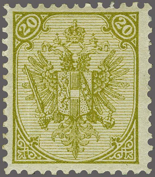 | Zusatzinformationen und Suchstichworte: | Corinphila Veilingen 257. Auktion 13. - 16. September 2023 Los 32 Bosnien Herzegowina Coat of Arms Issue 1879-1895, 20 kreuzer olive typographic printing perforated 11½, fine/very fine with 2023 Rüdiger Soecknick certificate: Die Marke mit seltener Zahnung hat Originalgummierung mit einem senkrechten Gummisprung und Falz. Auf der rechten Seite befinden sich teilweise gering verkürzte Zahnspitzen, cat.v. 1260 Ausruf 200,00 EUR |