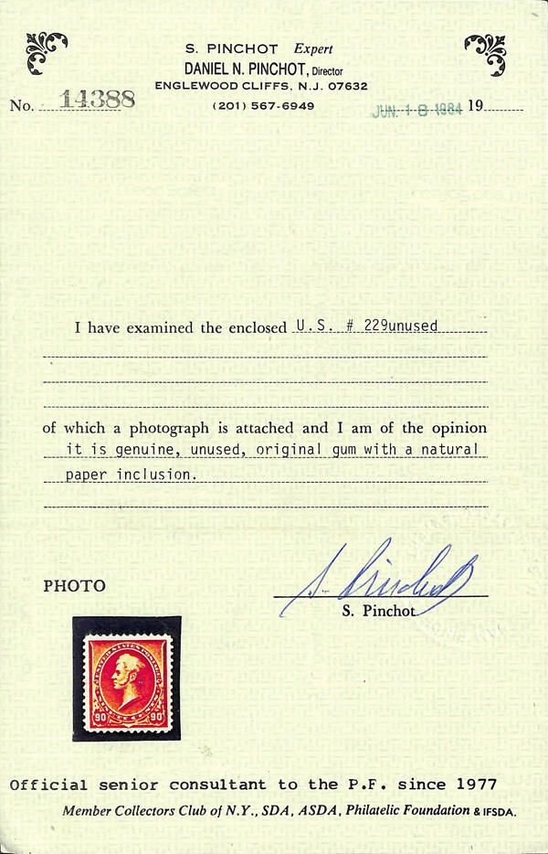 | Zusatzinformationen und Suchstichworte: | Kelleher 787. Auktion 6.-9. September 2023 Los 889 USA 1890-1893 kleine Banknotenausgabe 1890, 90¢ orange (Scott 229), Originalgummi, Hauch einer Falzspur (sieht aus, wie postfrisch), postfrisch mit leuchtend, kräftige Farbe; natürlicher Papiereinschluss in right-most unten Zähnung, immer noch sehr schön, mit 1984 Pinchot Attest. Scott $475. Ausruf 150,00 USD |