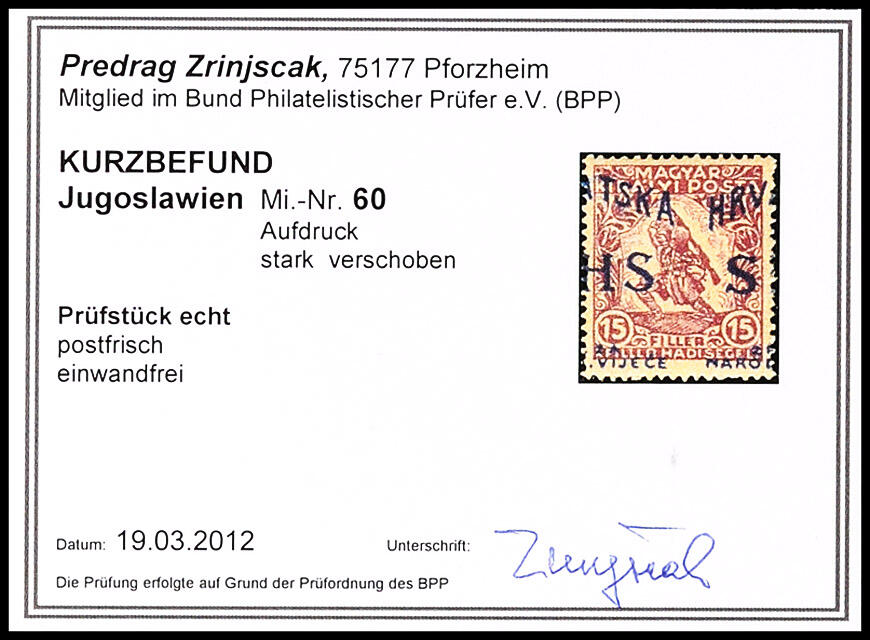 | Prüfer: | Zrinjšćak, Predrag (BPP (Bund Philatelistischer Prüfer)) |