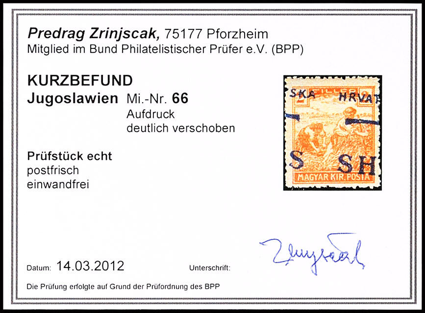 | Prüfer: | Zrinjšćak, Predrag (BPP (Bund Philatelistischer Prüfer)) |