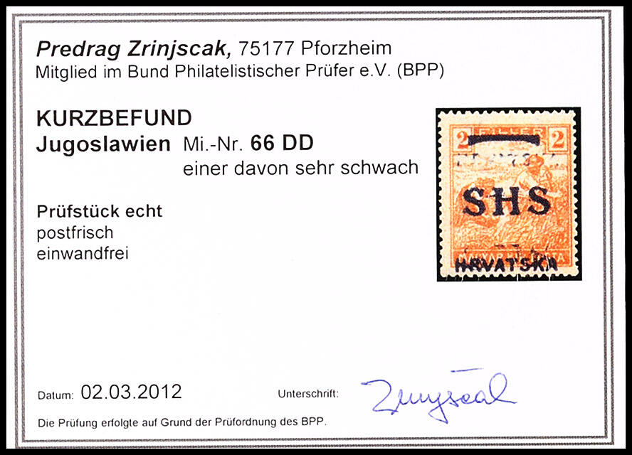 | Prüfer: | Zrinjšćak, Predrag (BPP (Bund Philatelistischer Prüfer)) |