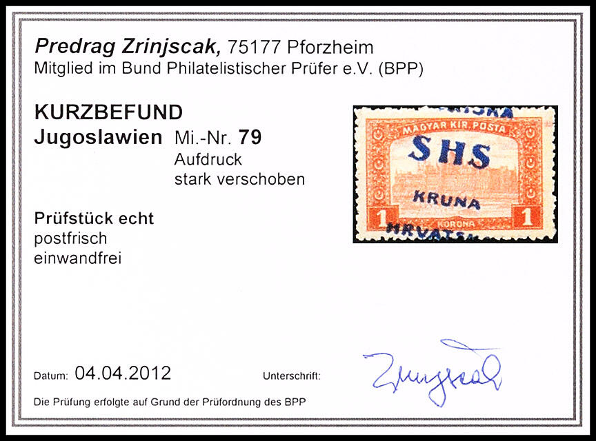 | Prüfer: | Zrinjšćak, Predrag (BPP (Bund Philatelistischer Prüfer)) |