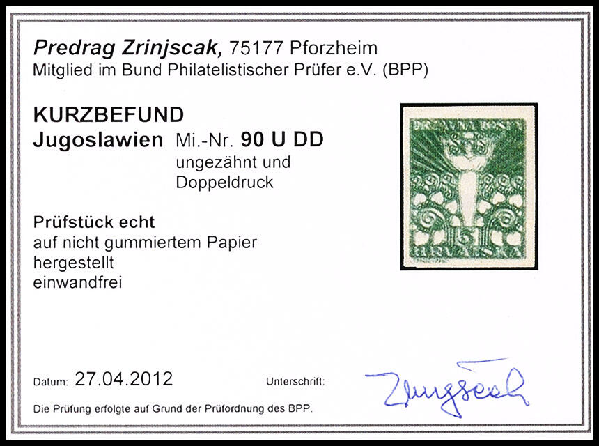 | Prüfer: | Zrinjšćak, Predrag (BPP (Bund Philatelistischer Prüfer)) |