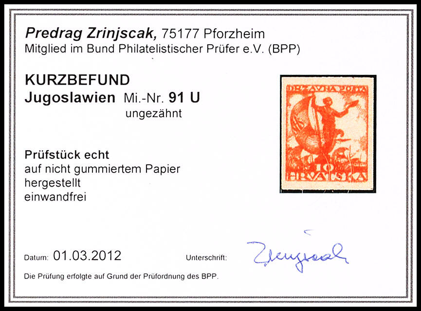 | Prüfer: | Zrinjšćak, Predrag (BPP (Bund Philatelistischer Prüfer)) |