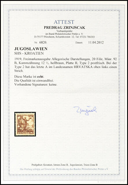 | Prüfer: | Zrinjšćak, Predrag (BPP (Bund Philatelistischer Prüfer)) |