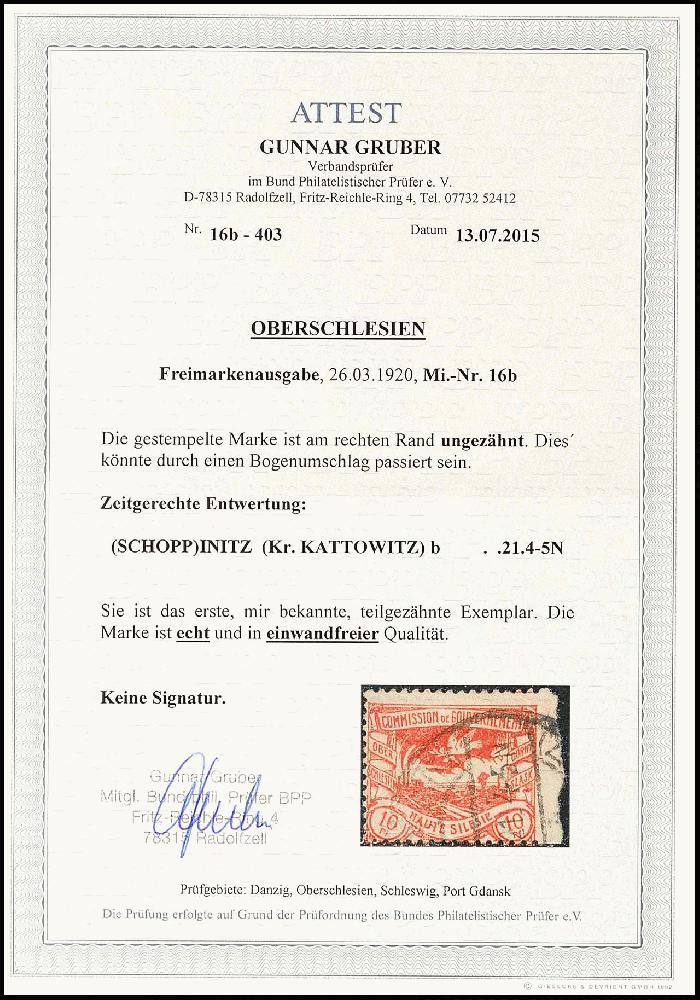 | Prüfer: | Gruber, Gunnar (BPP (Bund Philatelistischer Prüfer)) |