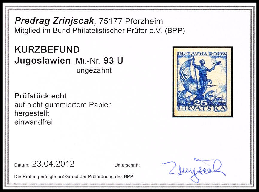 | Prüfer: | Zrinjšćak, Predrag (BPP (Bund Philatelistischer Prüfer)) |