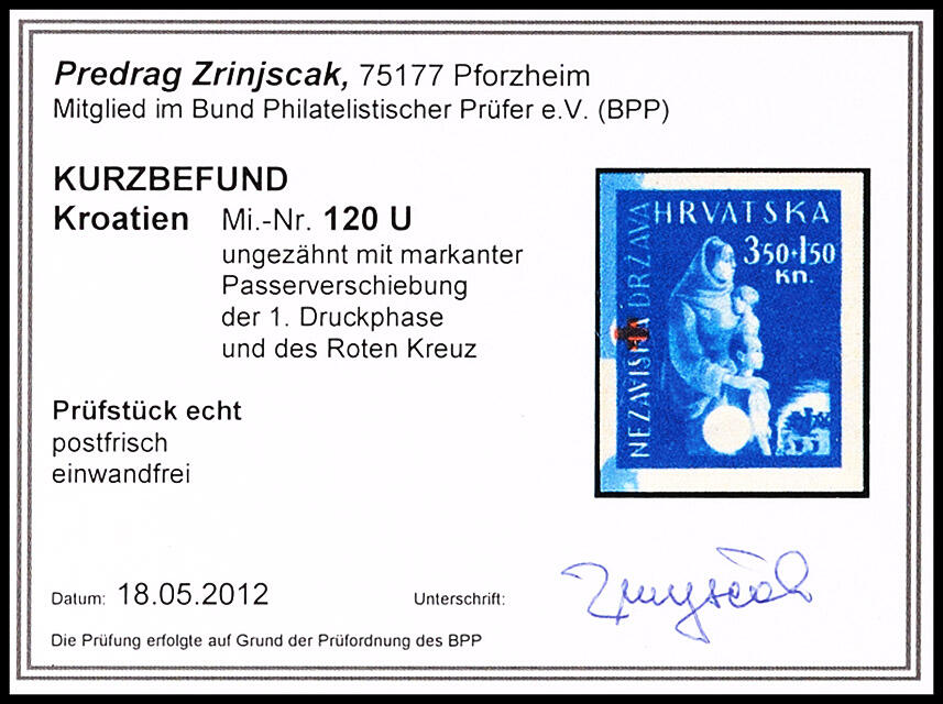| Prüfer: | Zrinjšćak, Predrag (BPP (Bund Philatelistischer Prüfer)) |