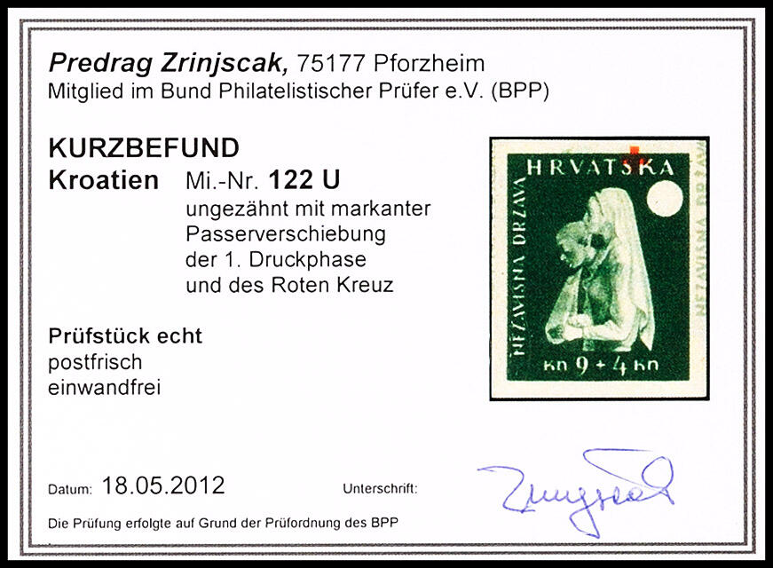 | Prüfer: | Zrinjšćak, Predrag (BPP (Bund Philatelistischer Prüfer)) |