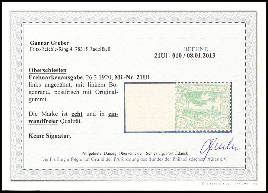 | Prüfer: | Gruber, Gunnar (BPP (Bund Philatelistischer Prüfer)) |