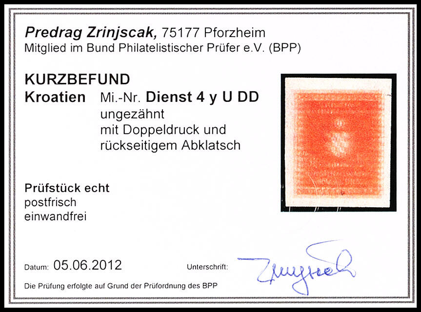 | Prüfer: | Zrinjšćak, Predrag (BPP (Bund Philatelistischer Prüfer)) |