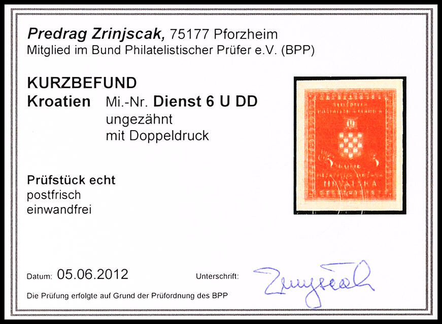| Prüfer: | Zrinjšćak, Predrag (BPP (Bund Philatelistischer Prüfer)) |