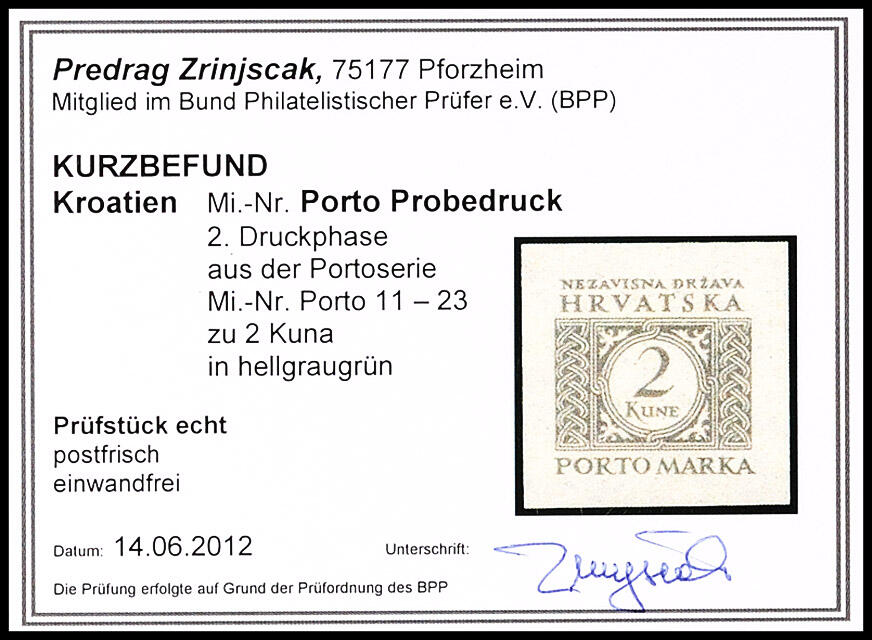 | Prüfer: | Zrinjšćak, Predrag (BPP (Bund Philatelistischer Prüfer)) |