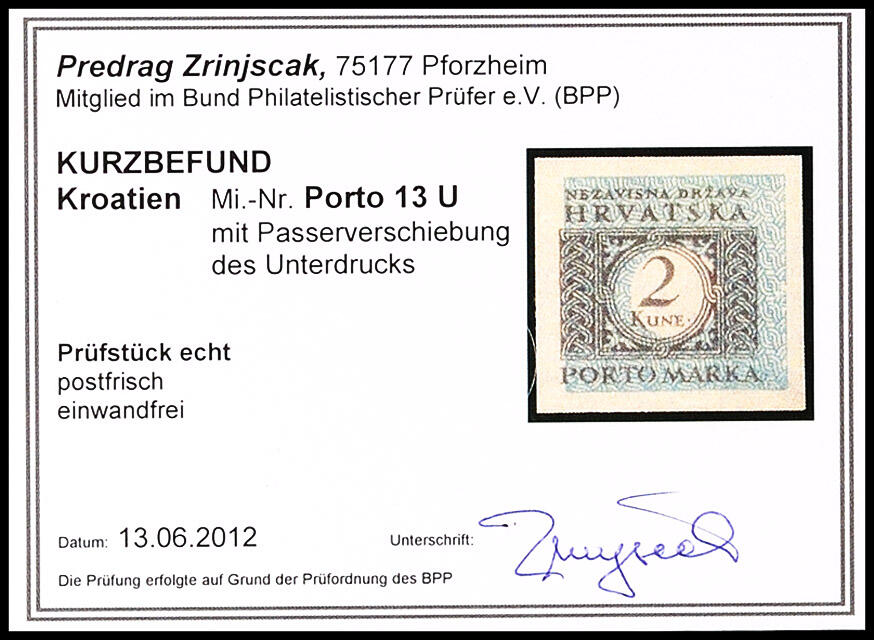 | Prüfer: | Zrinjšćak, Predrag (BPP (Bund Philatelistischer Prüfer)) |
