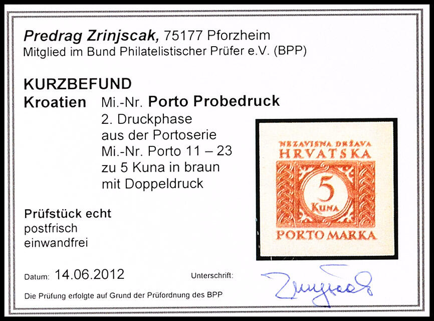| Prüfer: | Zrinjšćak, Predrag (BPP (Bund Philatelistischer Prüfer)) |