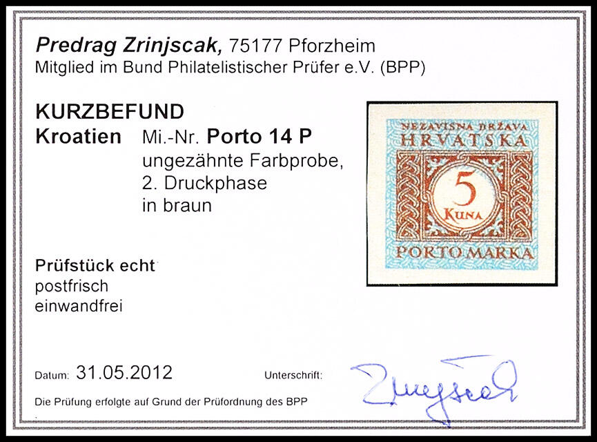 | Prüfer: | Zrinjšćak, Predrag (BPP (Bund Philatelistischer Prüfer)) |