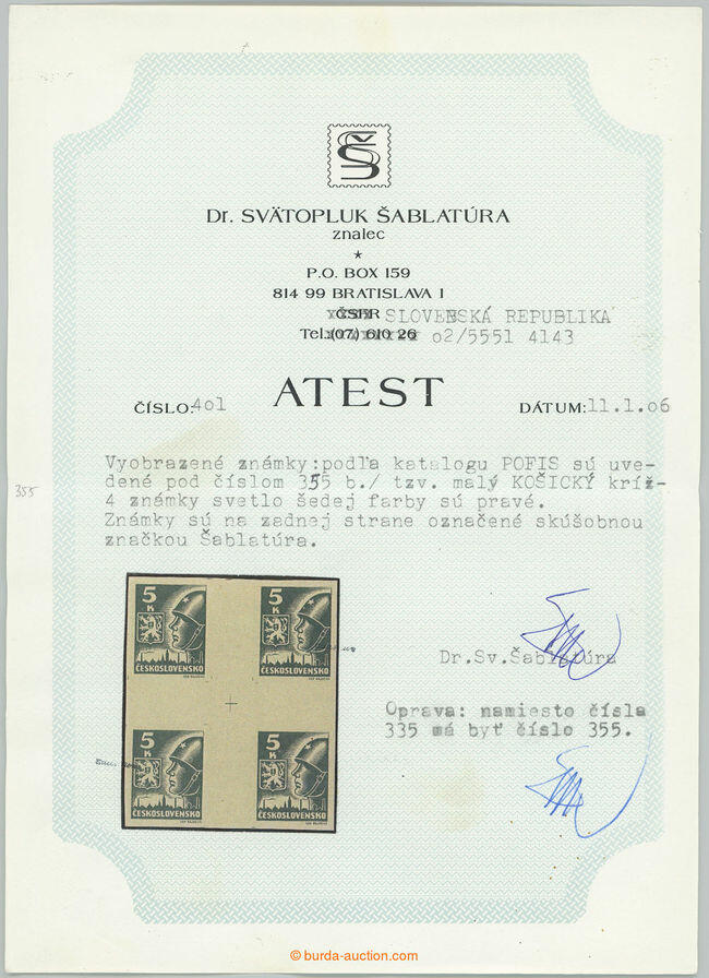 | Zusatzinformationen und Suchstichworte: | Burda 72. Auktion 16. - 17. September 2023 Los 1256 Tschechoslowakei 1945-1993 Männlich KRIZE/Pof. 354-356Mx (4), männlich Kreuz, kompletter Satz, 2 Koruna rot (kleiner Gummifehler), 5 Koruna hellgrau (!) und 6 Koruna blau; insgesamt sehr schöne Qualität, selten 5 Koruna hellgrau exp. Und Attest Sablatura, oftmals fehlend in Sammlungen! Ausruf 1.064,00 EUR |