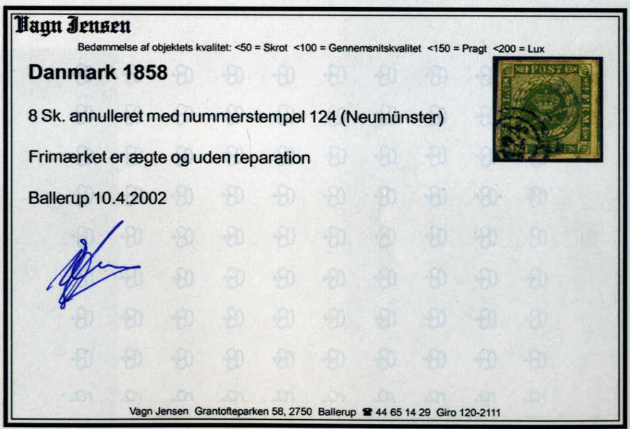 | Zusatzinformationen und Suchstichworte: | AAK Phila GmbH 79. Auktion 14. - 16. September 2023 Los 2072 (D) Dänemark "124" (Neumünster), dän. 3-Ringstpl. a. 8 Sk vollrandig Luxus m. dän. Befund Jensen Ausruf 50,00 EUR |