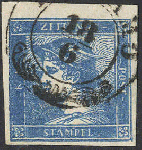 | Zusatzinformationen und Suchstichworte: | 72. Deider Auktion 29. Juni - 1. Juli 2023 Los 2471 Österreich Zeitungsmarken 1851 Blauer Merkur, frisches, voll- bis breitrandiges Kabinettstück in dunkelblau, Teil-L+V-Zier-K2 "BERGAMO", Fotobefund Strakosch. Zuschlag 140,00 EUR |