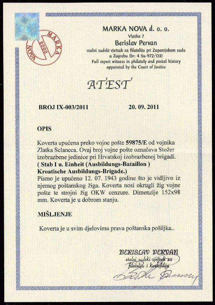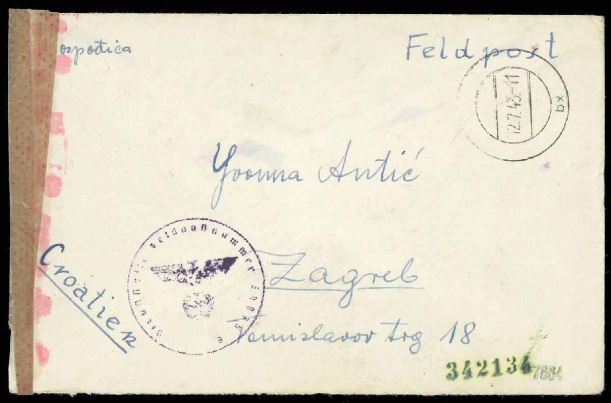 | Zusatzinformationen und Suchstichworte: | 76. Badische Briefmarken GmbH Auktion 27. Juni 2023 Los 16744 D Kroatien 1943, Feldpostbrief vom 12.7.43, von einem Angehörigen der Fp.-Nr. 59875 E (1. Komp., Gren. Rgt. 383, 373. Inf. Div. (kroat.) TIGER-DIVISION), aus der Aufstellungsphase Poststempel mit offenem Briefstempel des Truppenübungsplates Döllersheim, Poststempel von Zwettl, Zensur der ABP Wien, (Fotoattest Pervan 20.09.2011), geprüft Wieneke BPP Zuschlag 22,00 EUR |