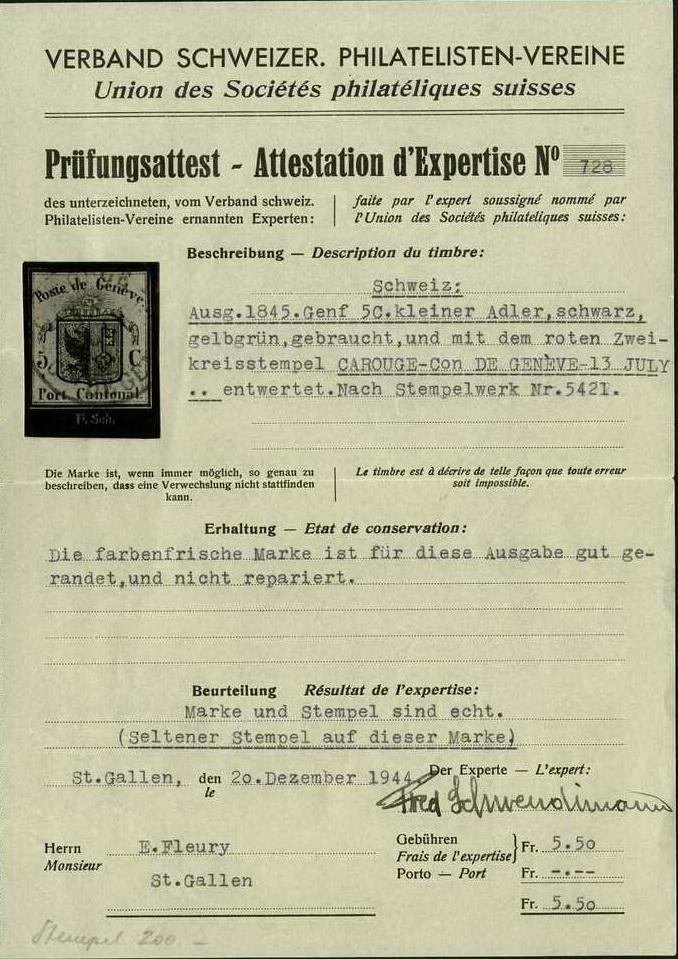 | Prüfer: | Schwendimann, Fred (SBPV / ASEP (Schweizerischer Briefmarken-Prüfer-Verband)) |