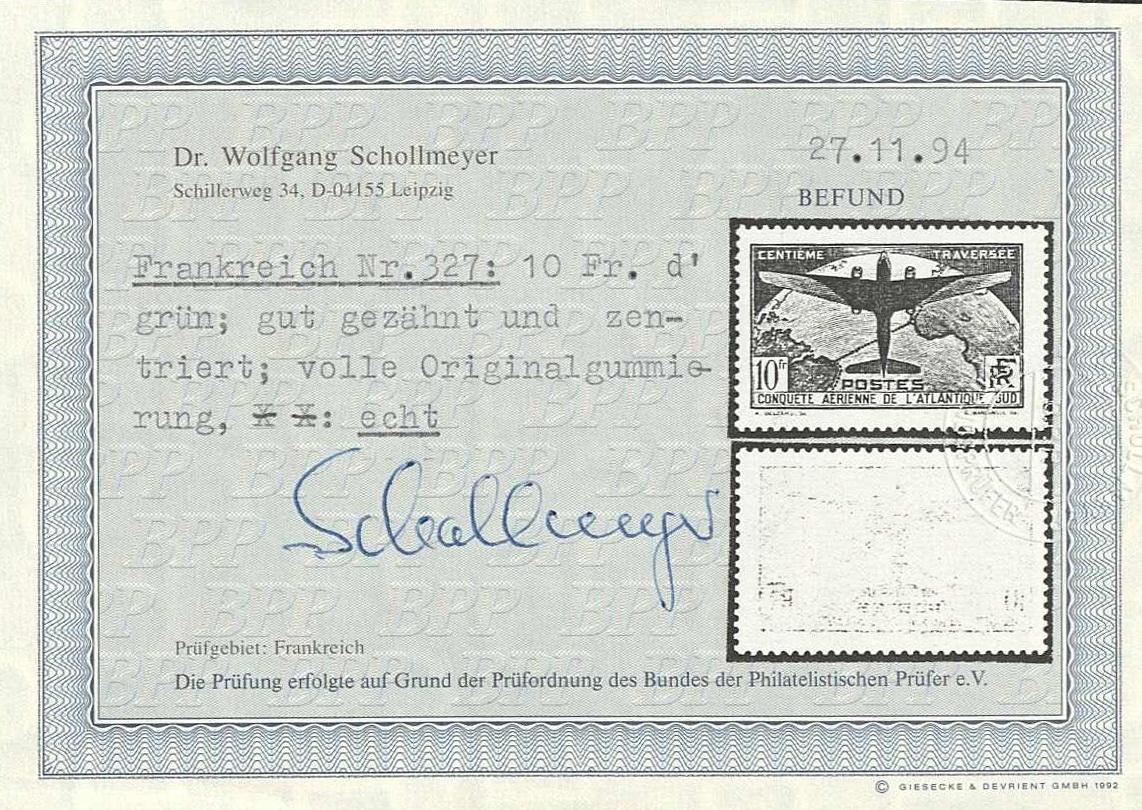 | Zusatzinformationen und Suchstichworte: | Gert Müller 119. Auktion 24. - 26. August 2023 Los 3224 Frankreich 10 Fr. Atlantikflug 1936, farbfrisch und sehr gut gezähnt, tadellos postfr., Fotobefund Dr. Schollmeyer BPP. Mi. 650,- € Ausruf 180,00 EUR |