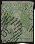 | Zusatzinformationen und Suchstichworte: | 253. Abacus Auktion 19. - 22. September 2023 Los 2065 Neuseeland 1855-58 blau Papier 1/- gelbgrün SG 6 (CP A6b; Scott 6), lupenrandig zu gut, verdünnt unten links welches ist augenscheinlich vom Gesicht, Pracht Ziffer 10 Stempeln, Katalogwert £4000 (NZ$7500; US$4750). RPSof NZ Attest (2022) Ausruf 575,00 EUR |