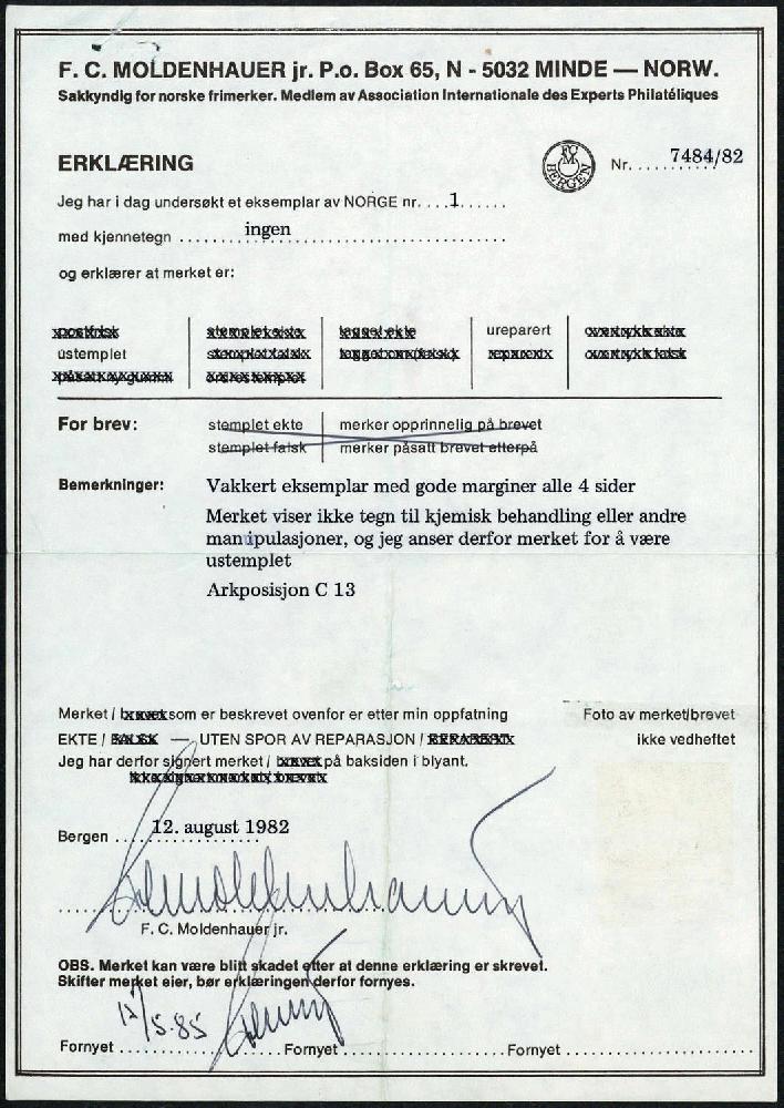 | KatalogNr: | NK Norgeskatalogen 1 |