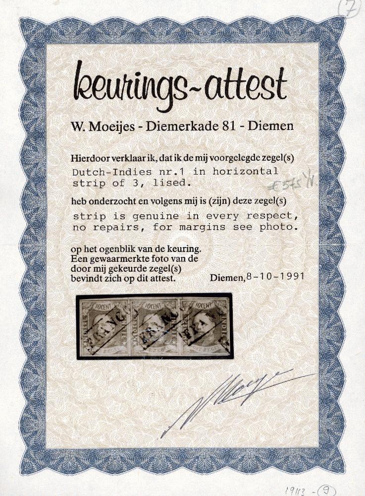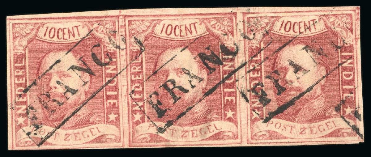 | Zusatzinformationen und Suchstichworte: | David Feldman S.A. - Alle Welt 27. - 29. Juni 2023 Los 91176 Niederländisch Indien 1864,10c See ungezähnt, Dreierstreifen, berührt Grundstock von erste Marke ansonsten vier gute Ränder, lebhafte Farbe, gestempelt mit dem "Franco" Kasten mark in schwarz, ein attraktiv und selten Einheit; Attest W. Moeijes (1991) Zuschlag 300,00 EUR |