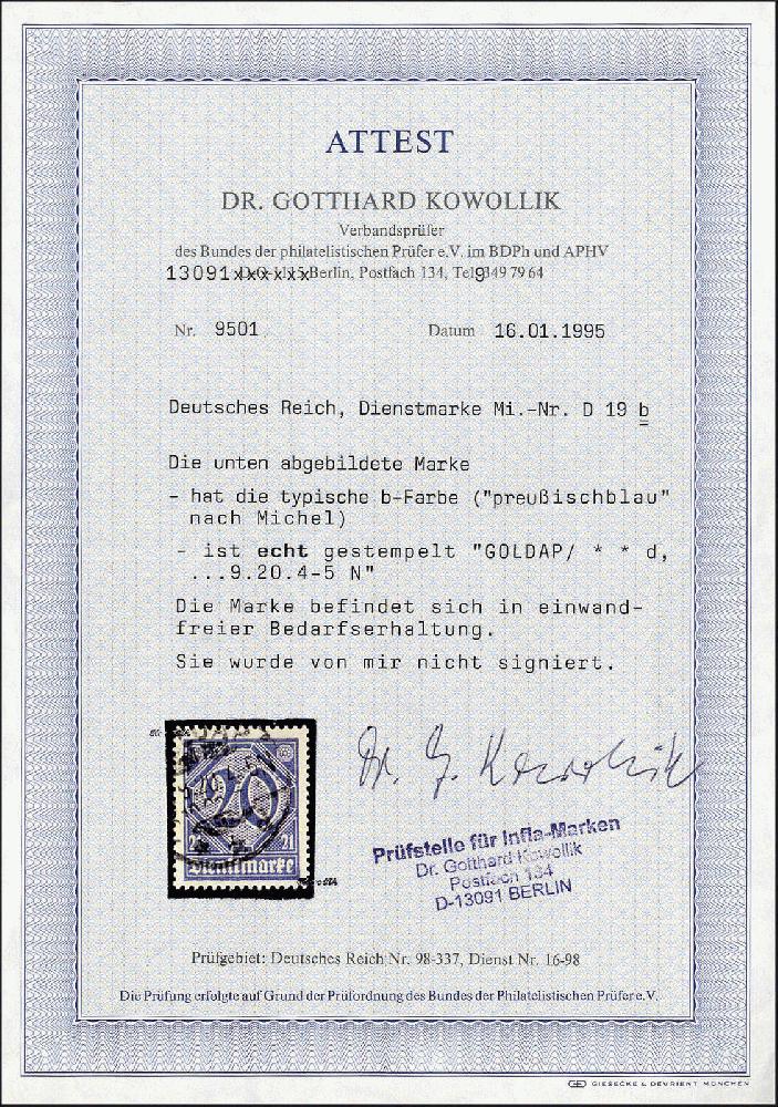 | Prüfgebiet: | Deutsches Reich Dienstmarken 1874 - 1945 |