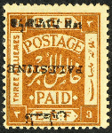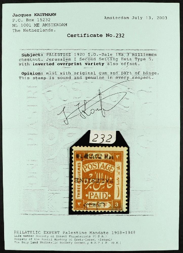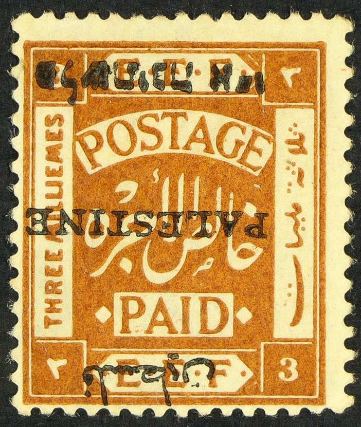 | Zusatzinformationen und Suchstichworte: | Cheshire Stamp Auction - #8347 - Public Auction 14. - 15. Juli 2023 Los 886 Palästina Palästina 1920 3m kastanienbraun gezähnt 15x 14 Überdruck kopfstehend Abart, SG 18a, ungebraucht. Zeigt auch Aufdruckabklatsch auf der Rückseite. Sehr selten, mit Jacques Kaufmann Foto-Zertifikat. (Schätzpreis - niedrig: 200. hoch: 250) Ausruf 160,00 GBP |