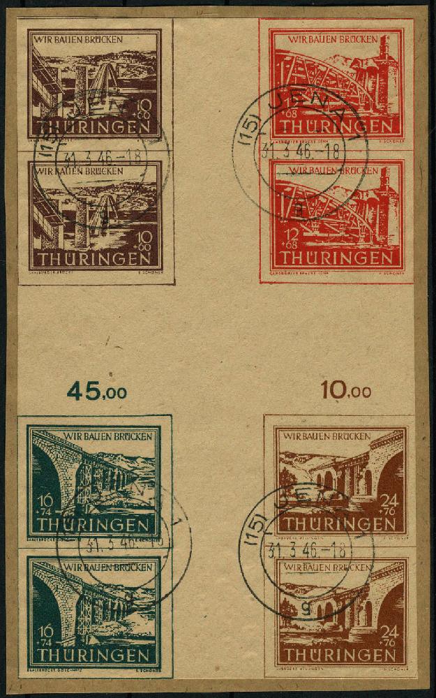 | Zusatzinformationen und Suchstichworte: | AAK Phila GmbH 79. Auktion 14. - 16. September 2023 Los 8153 (D) Sowjetische Zone 1945 Brückenbau-Herzstück m. 2 ZusDr. a. Luxus-Bfstck. JENA m. einwandfreiem Attest Herpichböhm Ausruf 160,00 EUR |