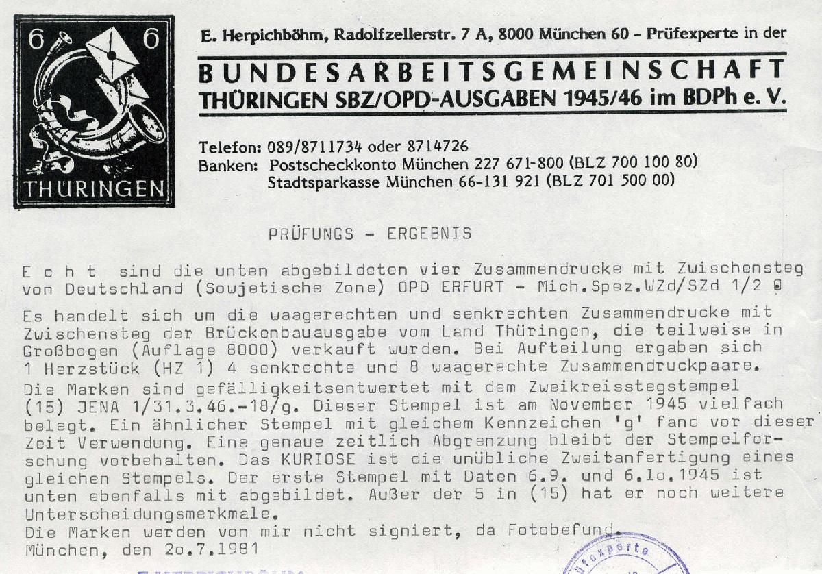 | Prüfgebiet: | Alliierte Besetzung SBZ Thüringen |