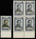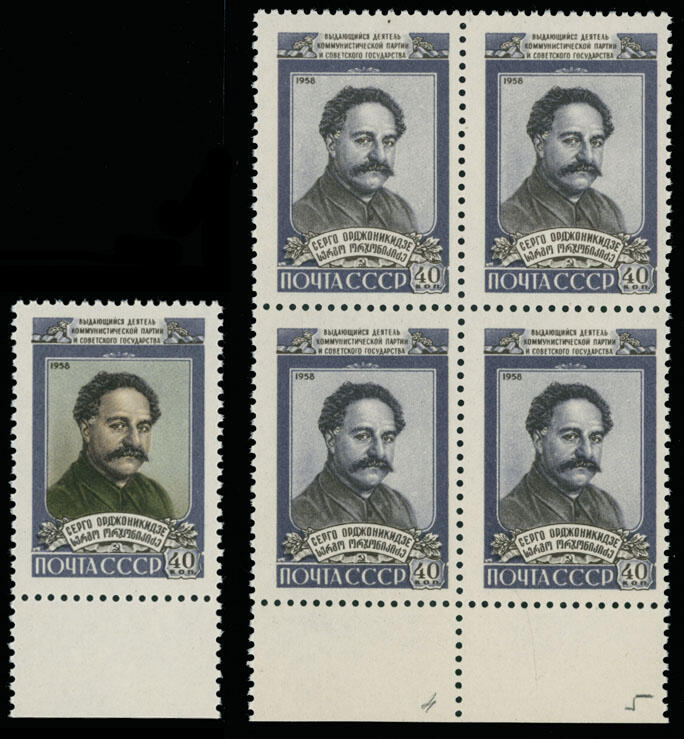 | Zusatzinformationen und Suchstichworte: | Raritan Stamps - 97. Auktion 30. - 31. August 2023 Los 1072 Sowjetunion 1958, Georgi (Sergo) Ordzhonikidze, 40k mehrfarbig, ausgelassen Hintergrund (gelb, braun und Grünfarben), Unterrand ungefaltet Viererblock, vollständiger Originalgummi, postfrisch, Pracht und seltene Einheit, ein Exemplar von V. Zagorsky Attest für Block von 24, angeboten Block ab Positionen 85 - 86/95-96 einer Hunderterbogen, Schätzpreis. $1,000-$1,500 Ausruf 500,00 USD |