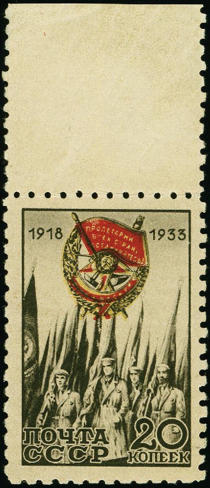 | Zusatzinformationen und Suchstichworte: | Heinrich Köhler 382. Auktion 18. - 23. September 2023 Los 1414 Sowjetunion 1933, Red Banner 20kop. multicoloured with upper sheet margin, perf. 9½, mint never hinged, very fine and rare, certificate Mandrovski (2007) Ausruf 1.800,00 EUR |