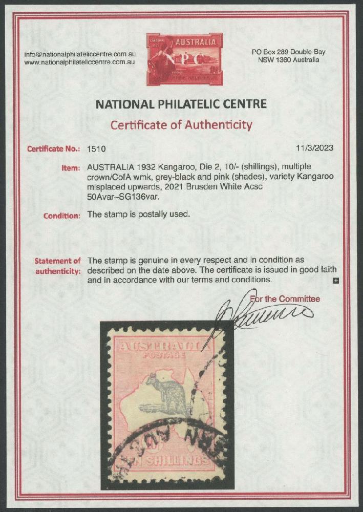 | Zusatzinformationen und Suchstichworte: | 253. Abacus Auktion 19. - 22. September 2023 Los 1111 Australien - Känguruhs - CofA_Wasserzeichen 10/- grau und rosa x 2 (einer mit dem Känguruh leicht verschoben vergriffen die Landkarte oben) und £1 grau, Datumskreisstempel, Katalogwert $1000 + . Gesondert NPC Atteste (2023) Ausruf 150,00 AUD |