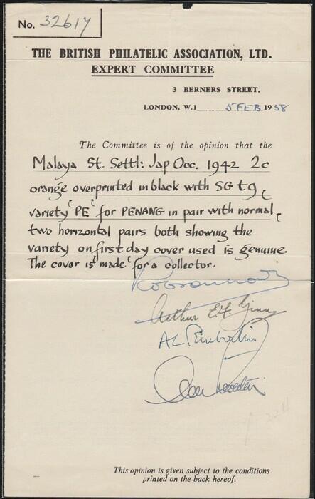 | Prüfgebiet: | Malaiische Staaten - japanische Besetzung |