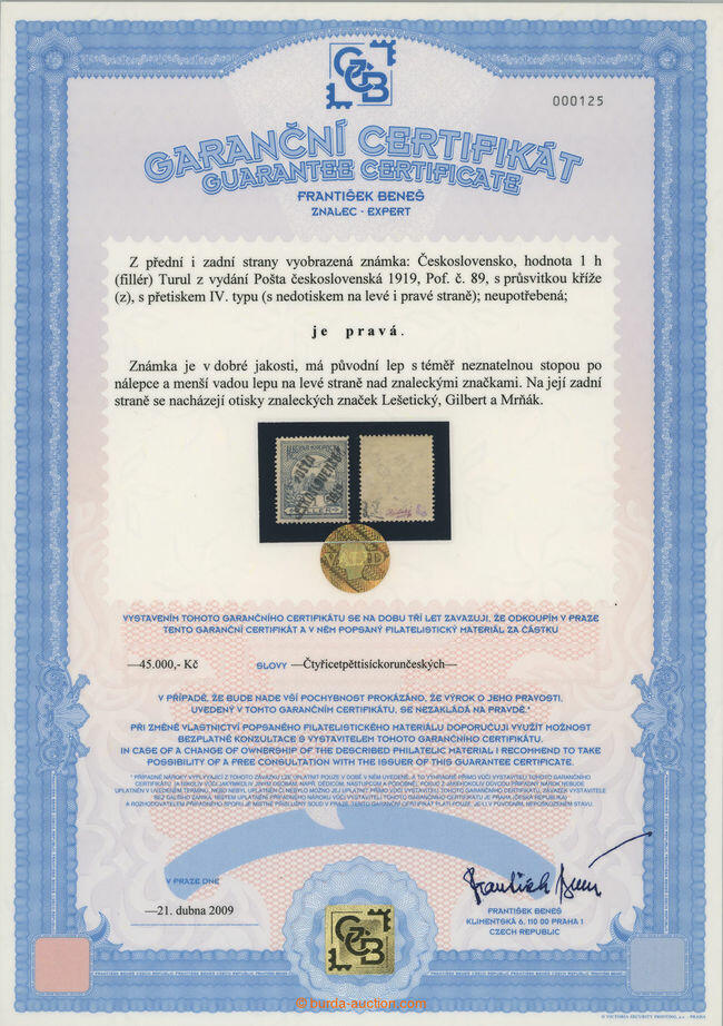 | Zusatzinformationen und Suchstichworte: | Burda 72. Auktion 16. - 17. September 2023 Los 2557 Tschechoslowakei 1918-1939 Pof. 89,1f grau/schwarz, Wasserzeichen z, Überdruck IV. Type (mit teilweise unvollständig Druck) ; kleiner Falz und kleiner Gummifehler, Garantieattest Benes, exp. Exp. Bei Gilbert. Leseticky und Mrnak, insgesamt sehr schön Stück dieser selten und gesucht Briefmarken! Ausruf 2.554,00 EUR |