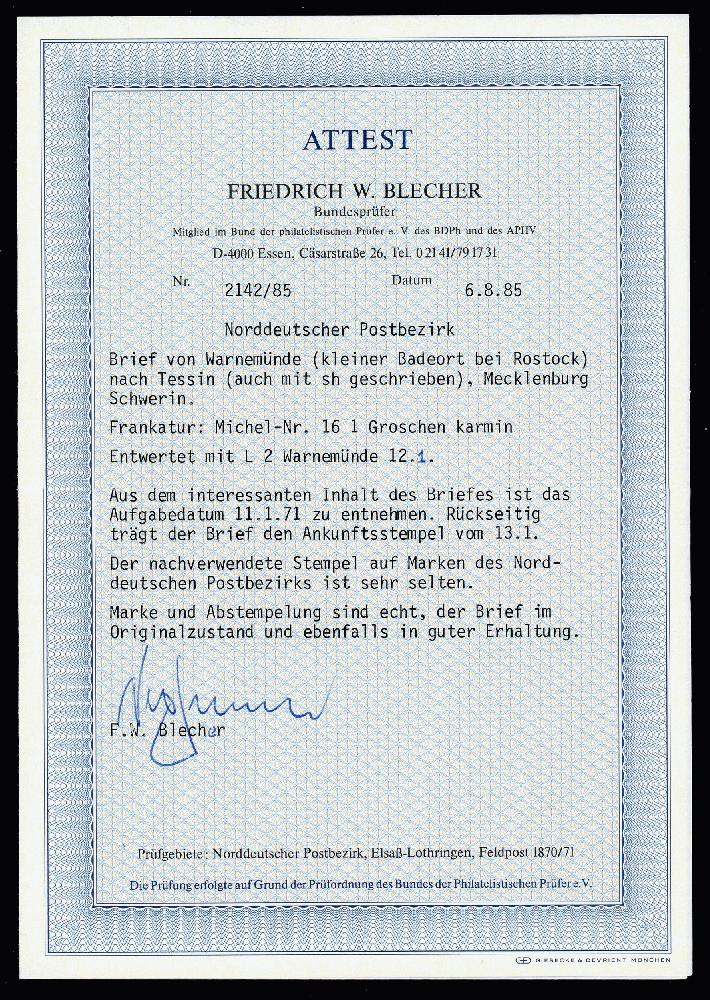 | Prüfgebiet: | Norddeutscher Postbezirk 1868 - 1871 |