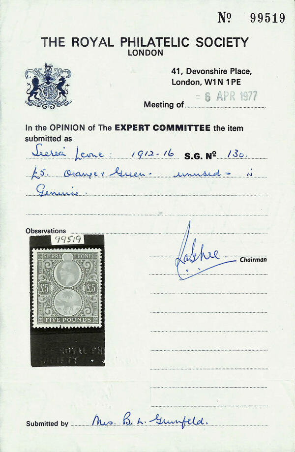 | Prüfer: | RPSL, Royal Philatelic Society (Prüferkommission) |