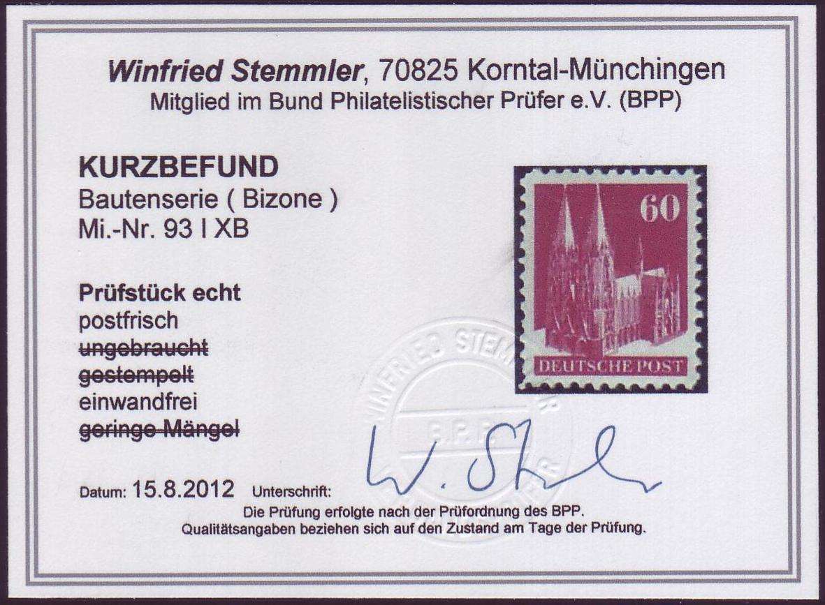 | Prüfer: | Stemmler, Winfried (BPP (Bund Philatelistischer Prüfer)) |