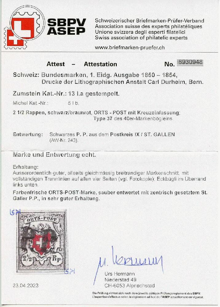 | KatalogNr: | Zumstein 13 Ia |