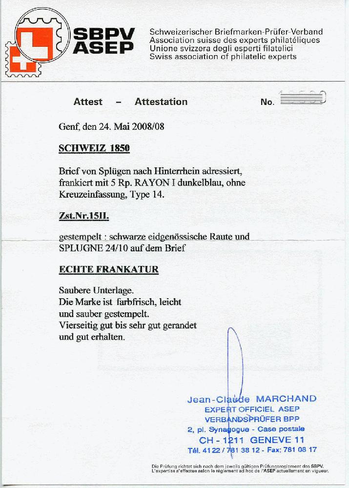 | Prüfer: | Marchand, Jean-Claude (SBPV / ASEP (Schweizerischer Briefmarken-Prüfer-Verband)) |