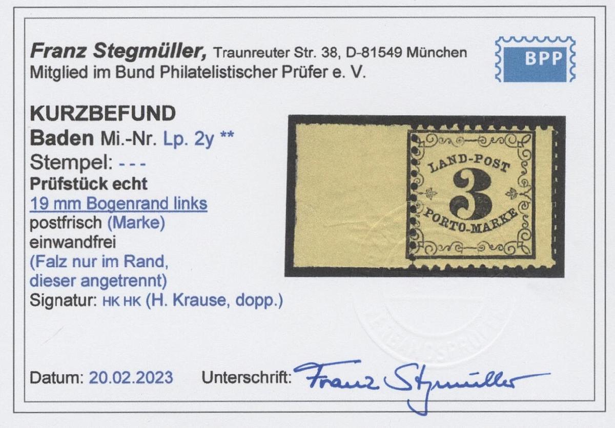 | Prüfgebiet: | Altdeutschland Baden Landpost-Portomarken |