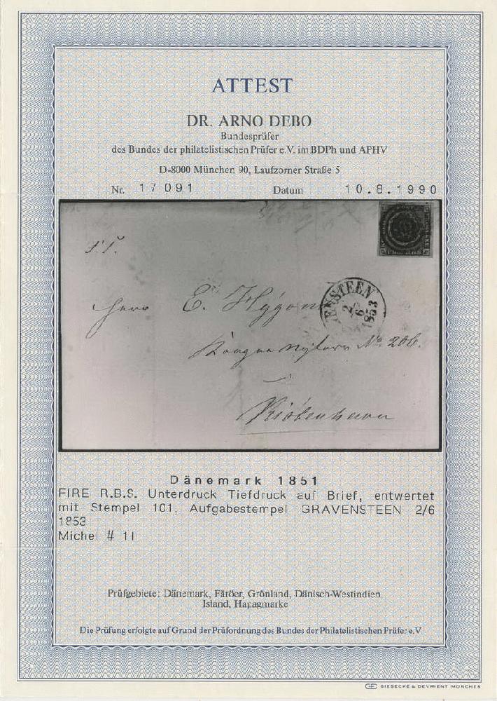 | Zusatzinformationen und Suchstichworte: | Postiljonen 239. Int. Briefmarken Auktion 26. - 29. September 2023 Los 69 Dänemark Cover with 4 RBS Ferslew with rare numeral canc. "101" and antiqua III cds. "GRAVENSTEIN 2.6 1853" sent to Copenhagen. Certs Debo and Møller. VERY RARE. Ausruf 500,00 EUR |