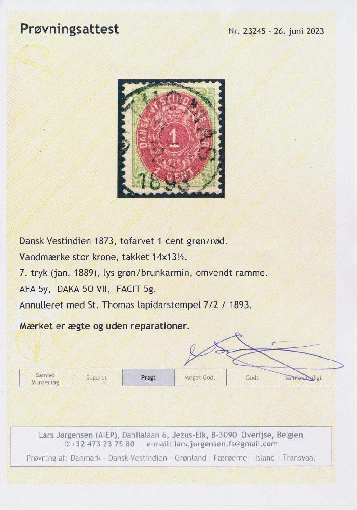 | Zusatzinformationen und Suchstichworte: | Postiljonen 239. Int. Briefmarken Auktion 26. - 29. September 2023 Los 704 Dänisch Westindien Very beautiful 1 cent 7th print inverted frame "ST.THOMAS 7.2 1893". Cert. Lars Jørgensen. SUPERB. Ausruf 100,00 EUR |