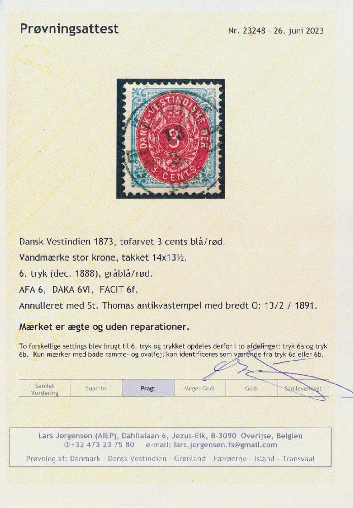 | Zusatzinformationen und Suchstichworte: | Postiljonen 239. Int. Briefmarken Auktion 26. - 29. September 2023 Los 711 Dänisch Westindien A very beautiful copy of 3 cents 6th print "ST.THOMAS 13.2 1891". Cert. Lars Jørgensen. SUPERB. Ausruf 150,00 EUR |