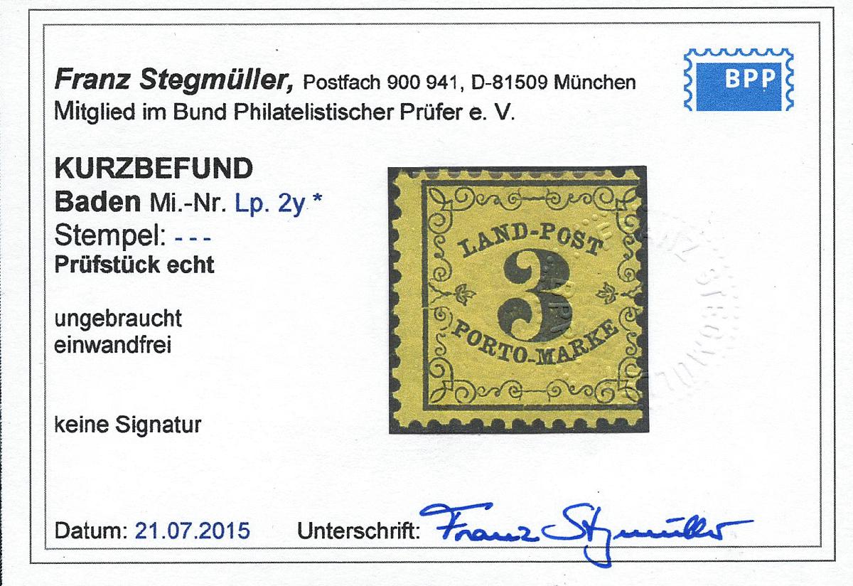 | Prüfgebiet: | Altdeutschland Baden Landpost-Portomarken |