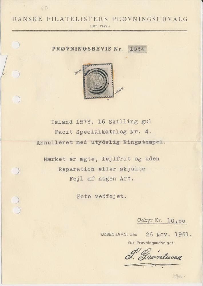 | Zusatzinformationen und Suchstichworte: | Postiljonen 239. Int. Briefmarken Auktion 26. - 29. September 2023 Los 963 Island Skilling Ausgabe 16 aur yellow comb perf. 14 in a used copy canc. with 3-ring numeral canc. most certainly "1" of Copenhagen. An off centered copy as often but with perfect perforation. F=22.000. Certs. Grønlund and Witschi. FINE COPY. Ausruf 250,00 EUR |